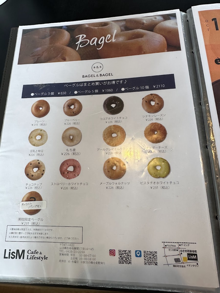 Welcome to LisM Cafe&Lifestyle, a cozy and stylish café nestled in Hofu, Japan. This charming spot is renowned for its diverse range of bagels, which are baked to perfection and come with a variety of delectable toppings. Customers rave about the crispy texture and flavorful combinations, such as the teriyaki chicken bagel with cream cheese, which has become a crowd favorite.